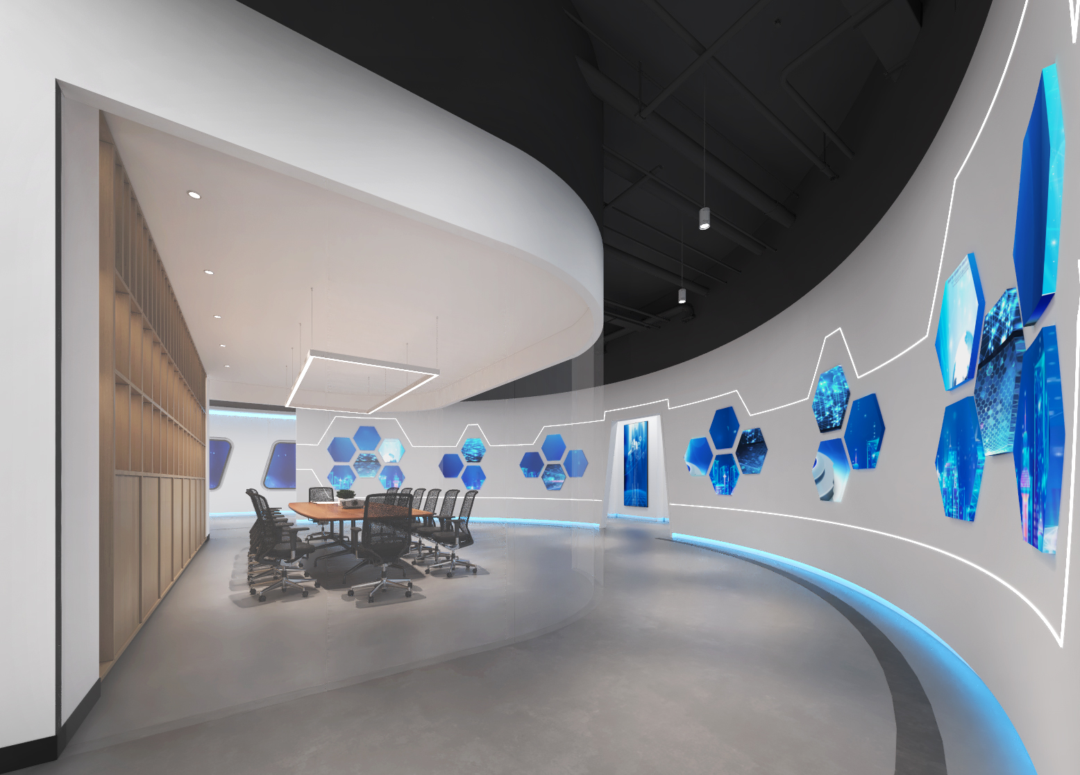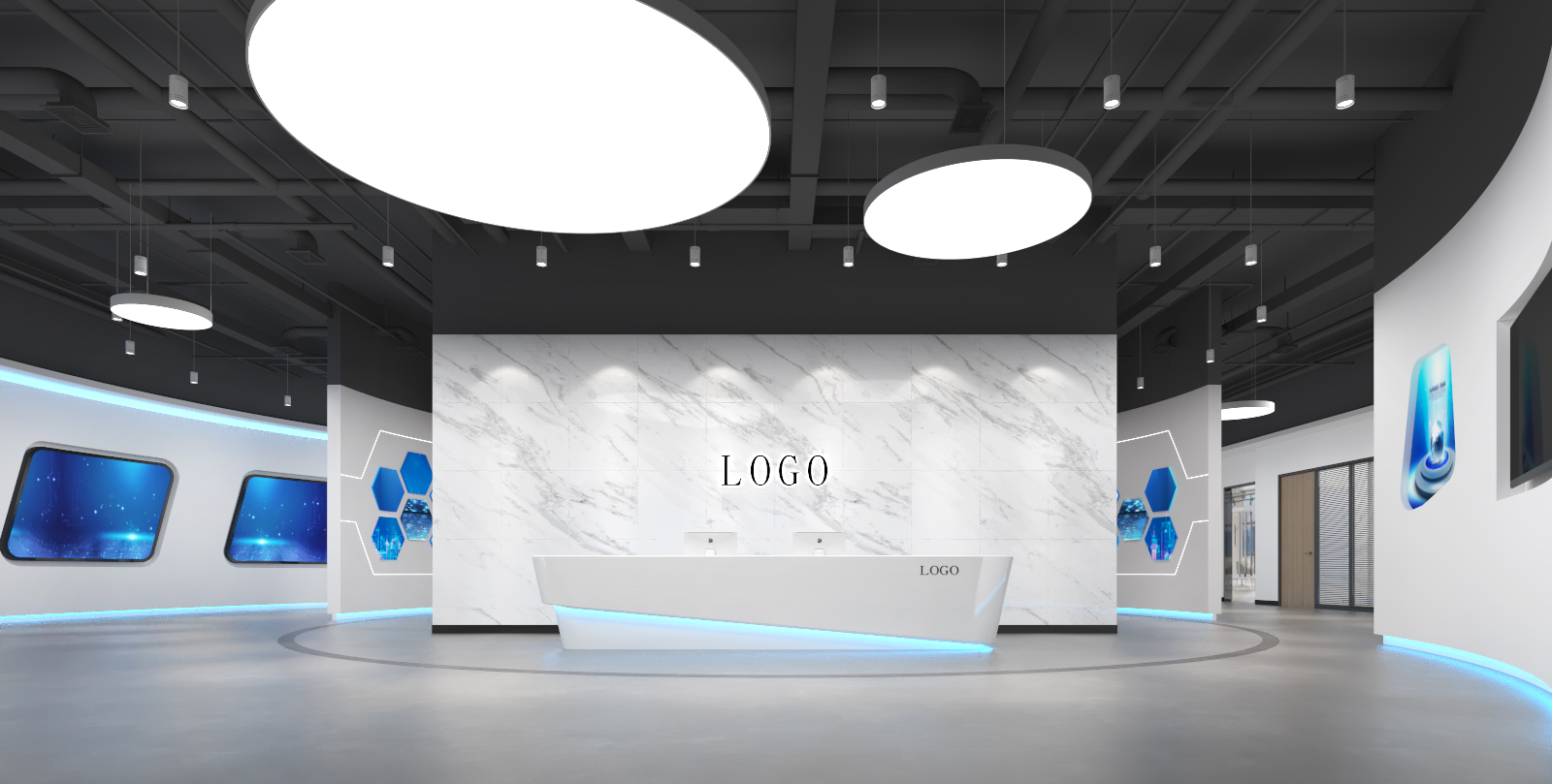 數(shù)字產(chǎn)業(yè)園展廳設(shè)計效果圖-企業(yè)展廳展示設(shè)計-深圳文豐裝飾