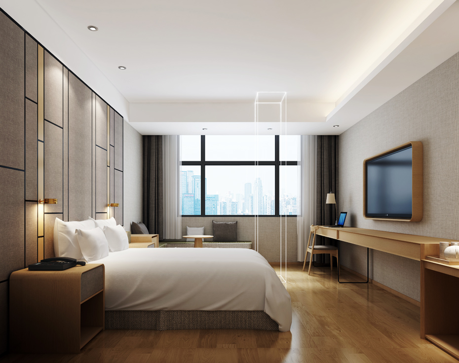 酒店裝修設(shè)計(jì)中,非常注重居室空間的布局與使用功能的完美結(jié)合,以簡潔的造型、無過多的裝飾、推崇科學(xué)合理的構(gòu)造工藝,展現(xiàn)出空間的實(shí)用性和靈活性。